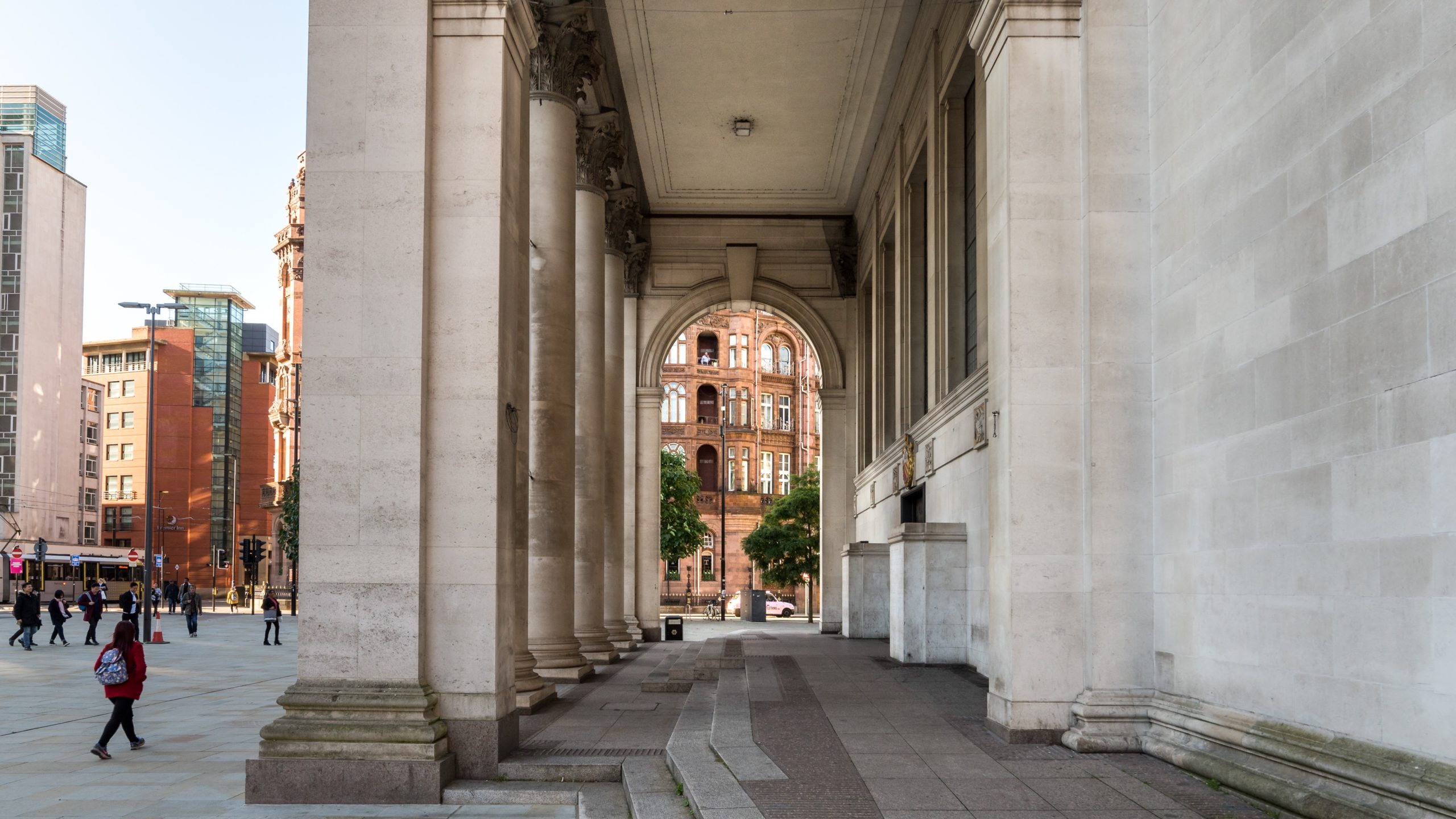 Looking through the portico of Central Library